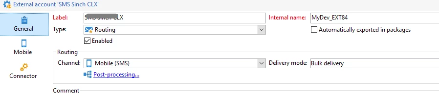 The SMS external account config is below-