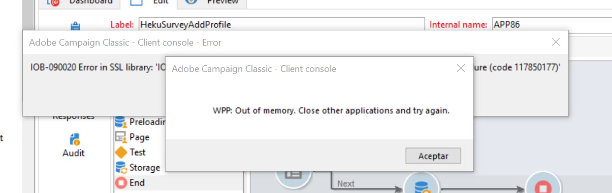 in backend serverConf.xml file increase JS memory to 512 or more, nlserver config -reload /restart web module