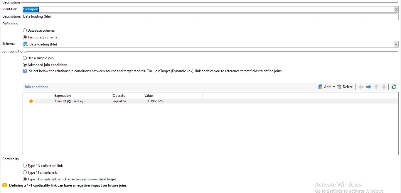 We are trying to use the Advanced join as shown above to a temporary table but we are getting Sql error at the time of delivery is trigger