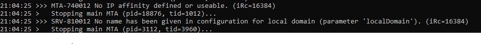 NB You have a relay address set in your serverConf.xml. If intended it should be moved to the instance conf- serverConf is supposed to be used as a read-only reference.