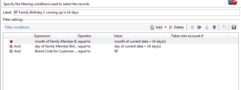 And I've created a birthday journey for all of them that will send an email to them if they met my criteria (in this case their birthday is in 14 days). Problem is it looks like this: