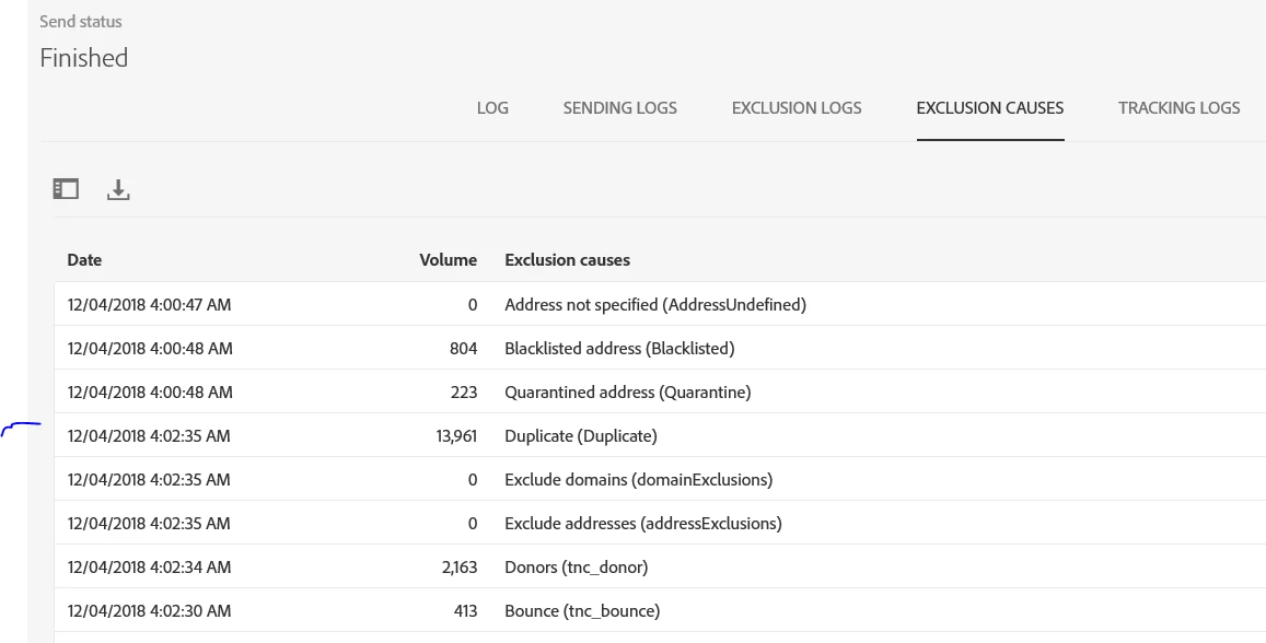 I was looking at the sending logs for a delivery and was surprised to see a large number of exclusions due to the exclusion clause "duplicate":