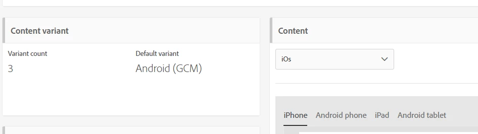 We have created a event for transactional message of push channel.targeting profile. When we publish it and the transactional message is created, by default, there are created in content variant, the three of the plattforms: