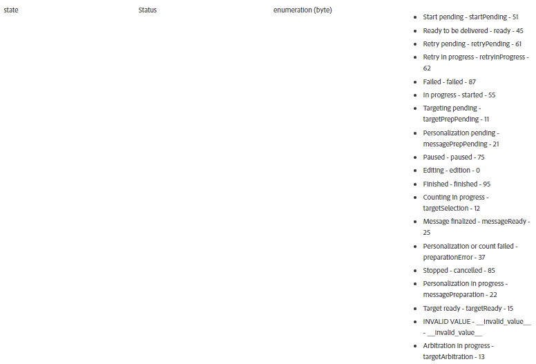 For example, in Delivery resource, Status field is such example for enumeration. If you see the data model for delivery, the enumeration values are as below