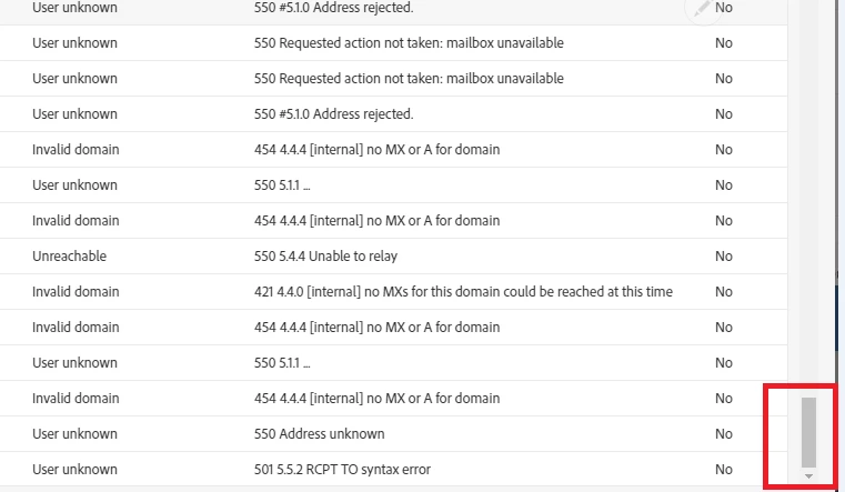 Does anyone know why there would be a discrepancy of 7 between the amount of bounces and errors with the 'Failed' list, and then why it would only display 42 of those 60 in failed list?