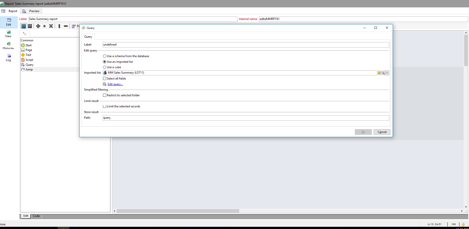 'temp:query' schema not defined error while report preview