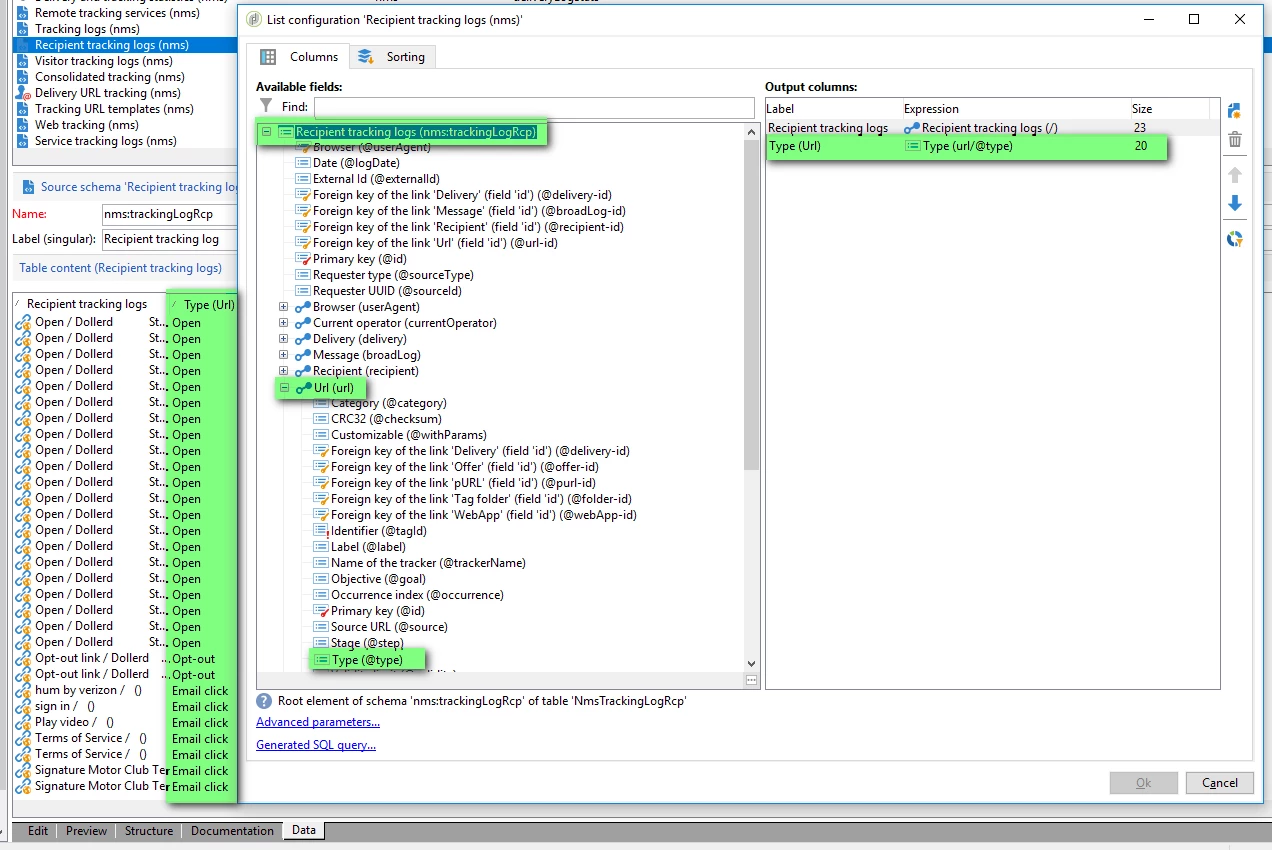 Explorer-> Administration -> Configuration -> Data schemas -> Recipient tracking los (nms)