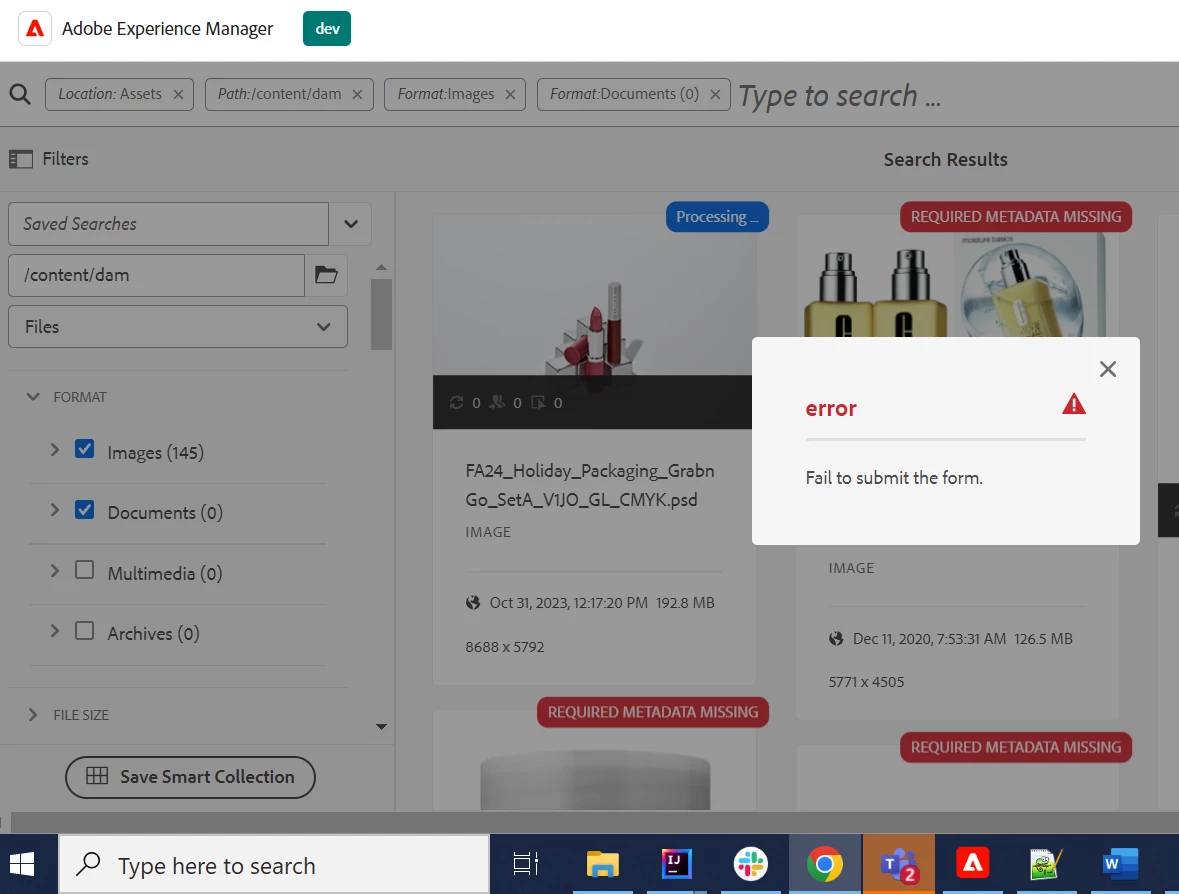 Currently, for asset searches, we are utilizing the GET method (via acs-assets-sharecommons). When selecting all images and documents in bulk, the URL is generated too large: