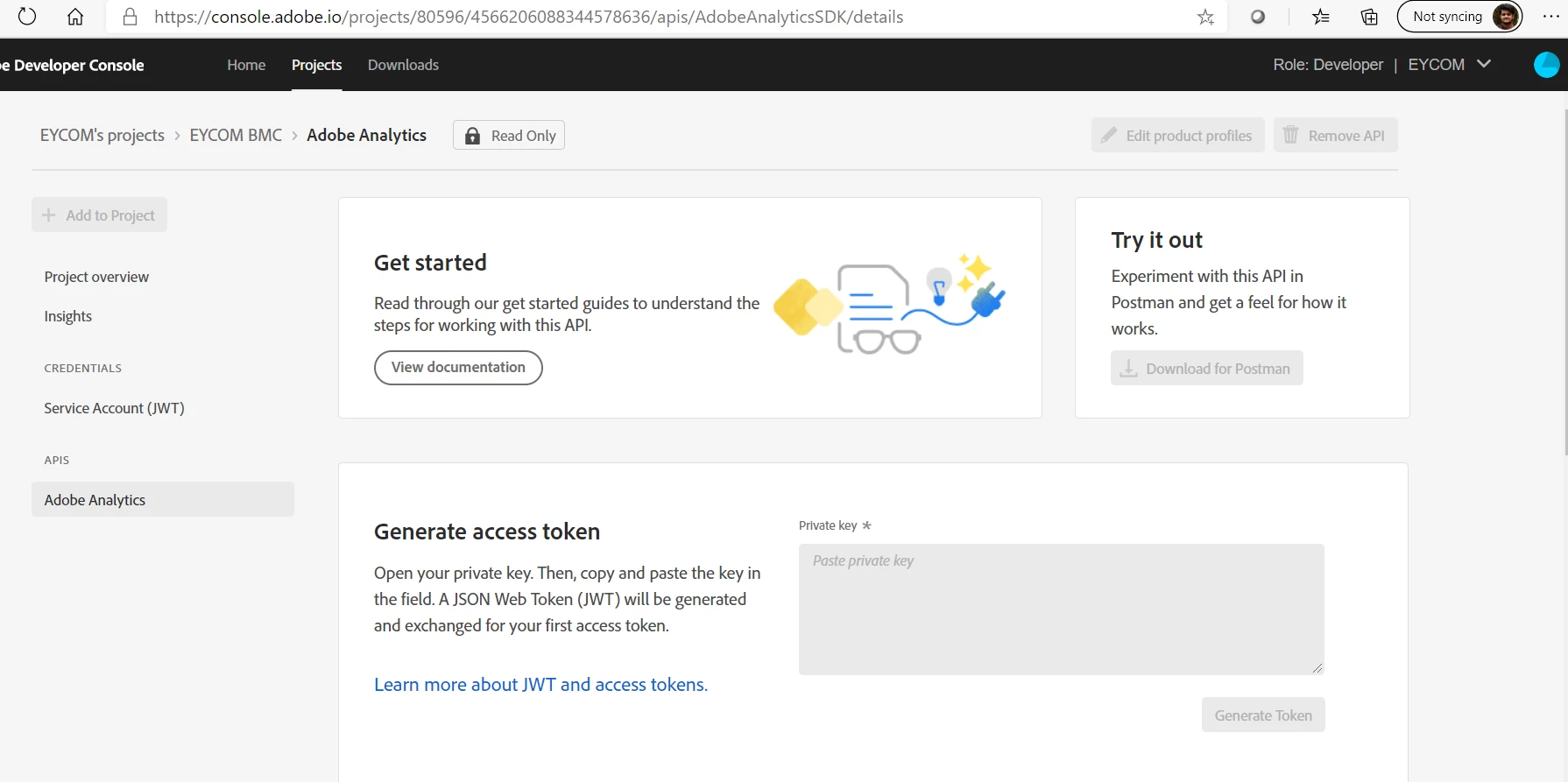 I'm having developer access to a project in Adobe console which is created to access Adobe Reporting API 2.0.