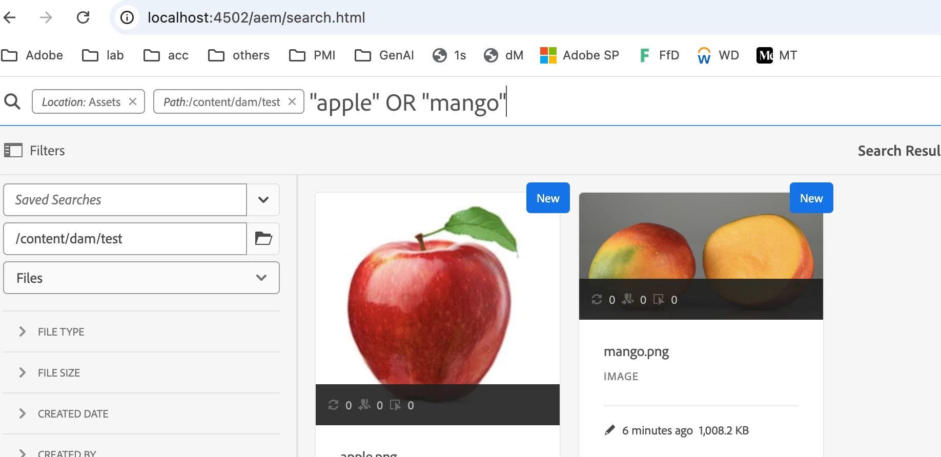 If i search with "apple mango" it is resulting 0 assets but it should result 20 assets.