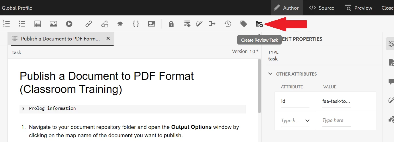 When I try to create a review task, no task is created. I'll walk through my steps: