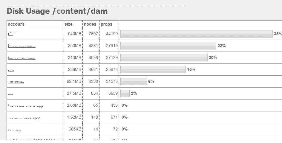 I wondered if somebody can please help me or point me in the right direction. Sorry, I have searched the forum, but maybe not using the correct term. We are using the AEM DAM, and I would just like a report on how much space we are using and if possible how much space we have.