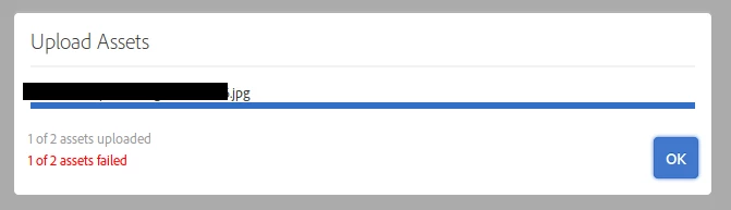 Error messages displayed when uploaded images in AEM Assets