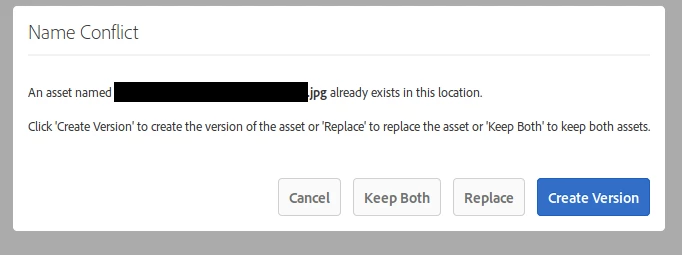 Like the above errors, sometimes I see this when uploading an Asset. However the asset in question is brand new and not a duplicate: