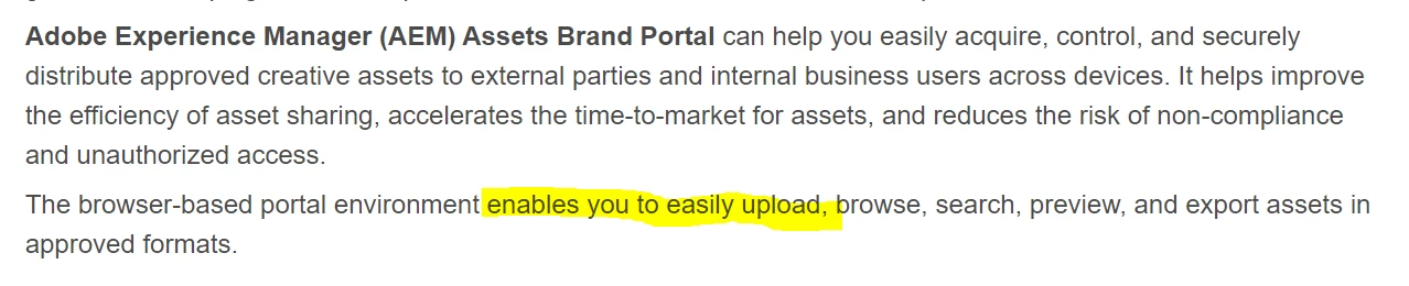 Adobe AEM Assets Brand Portal 6.4.5 release brings this feature of uploading assets.
