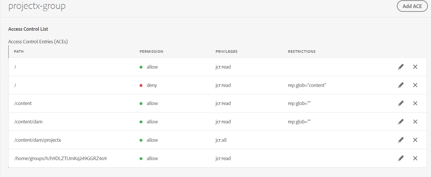 Using the above approach users will have access to specific folders only( in above case : content/dam/projectx) and will not have access to any other folders or any new folders that will be created in DAM as we are not denying other folders and explicitly giving permissions to specific folder