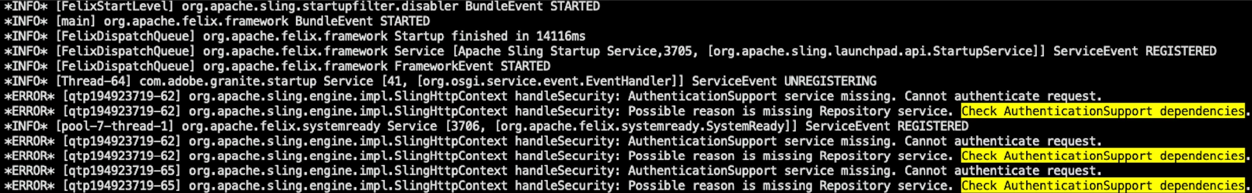 “*ERROR* [qtp194923719-62] org.apache.sling.engine.impl.SlingHttpContext handleSecurity: AuthenticationSupport service missing. Cannot authenticate request.”