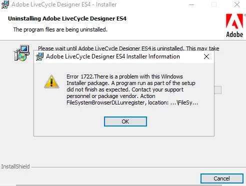 Am trying to uninstall Adobe Live Cycle Designer ES4 from the device. Am facing the below error.