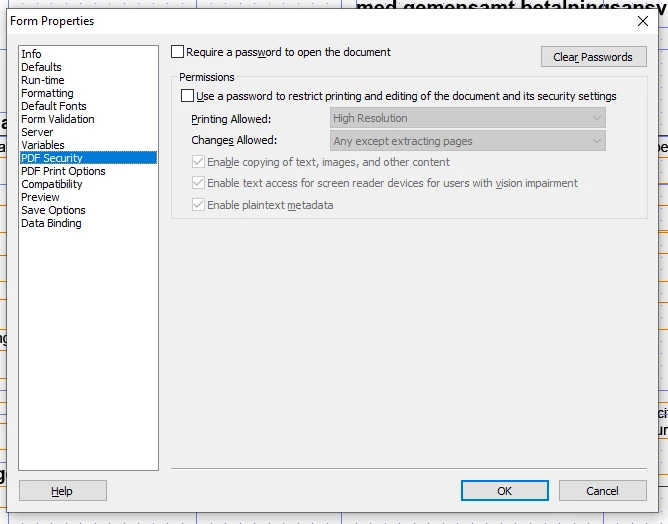 When opening them in Adobe PRO DC to check accessibility I get a fail on "Primary language", in AEM I have set form locale to "Swedish".