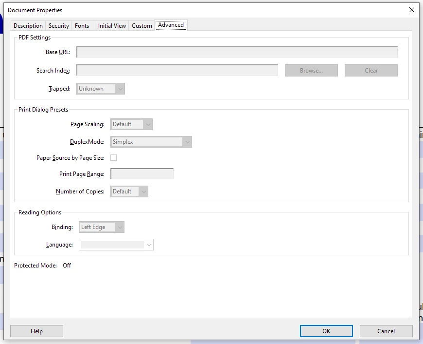 If I try to Fix the Primary language in PRO I get message that the document security settings don't allow this fix, but the file has Security Method "No security".