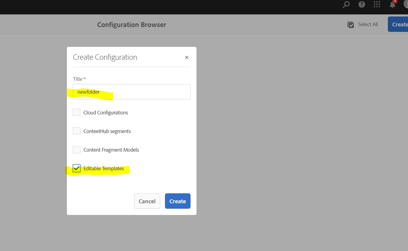 2> Create a new folder with Editable template, you can allow cloud configuration as well. No harm