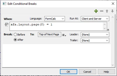 Conditional Break if Object on Page One after layout