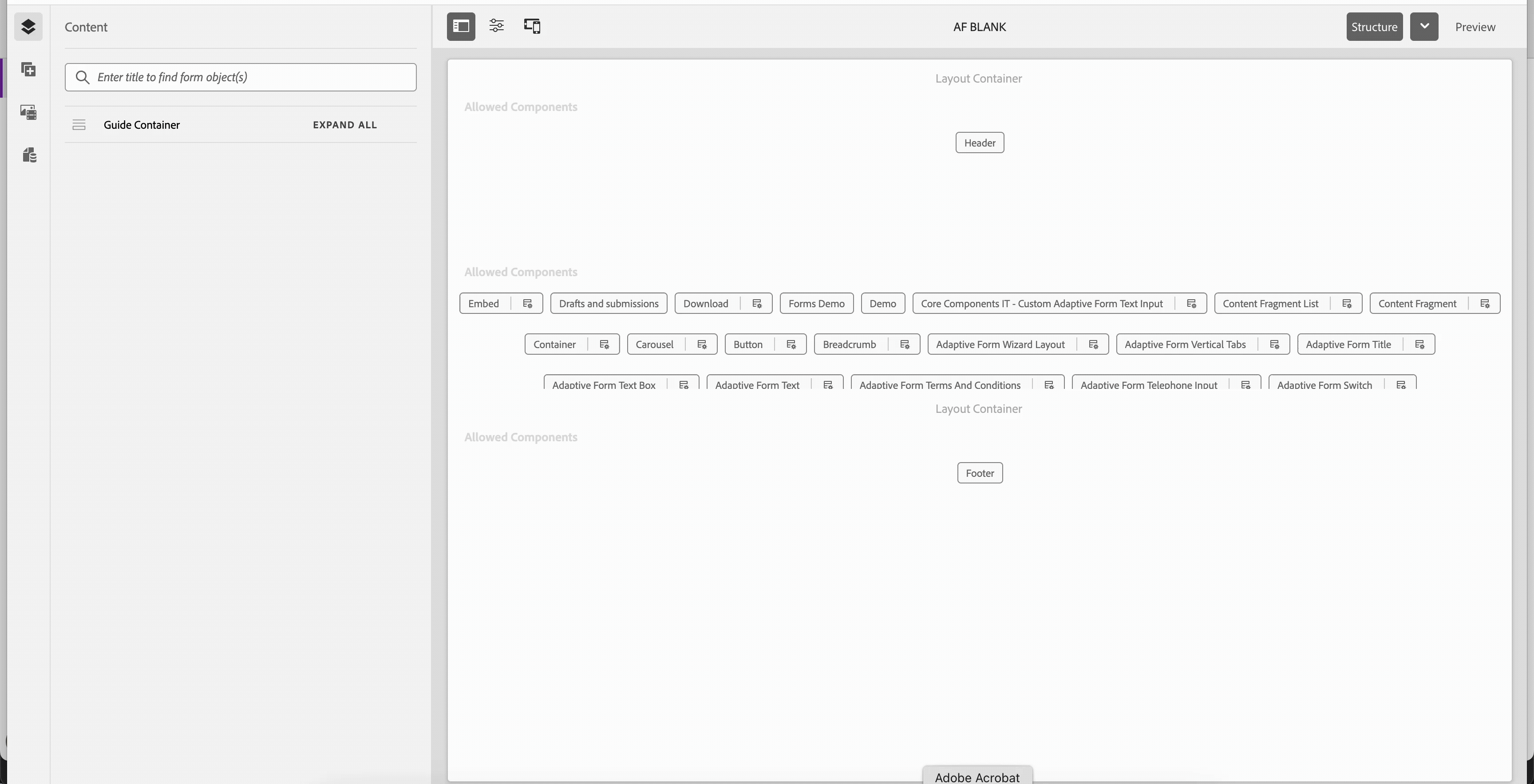 The component shows up in the form, but we can’t author or edit it in the Touch UI editor.