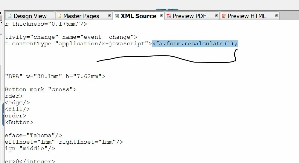 I've inherited a 2 page Dynamic XML PDF that has around 3,500 lines of JavaScript that was added manually to various click events in AEM Forms Designer/LiveCycle. I've grabbed all the 'Events with Scripts' from the form and pasted them into a code editor to review. Ideally I'd like to do a find/replace across the entire codebase for the form in my code editor. Is there some other way of interacting with code in a Dynamic XML PDF outside of Designer/LiveCycle? Can I export/import the code somehow? Having to go in and manually adjust each event is going to take many, many hours. There's got to be another way, right?