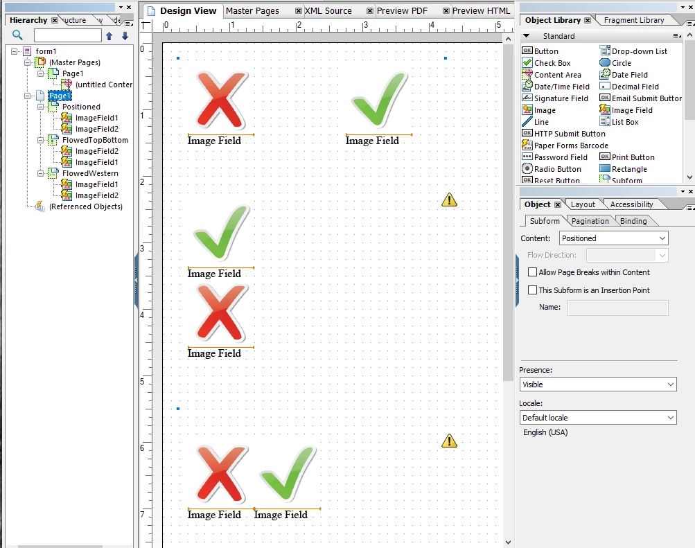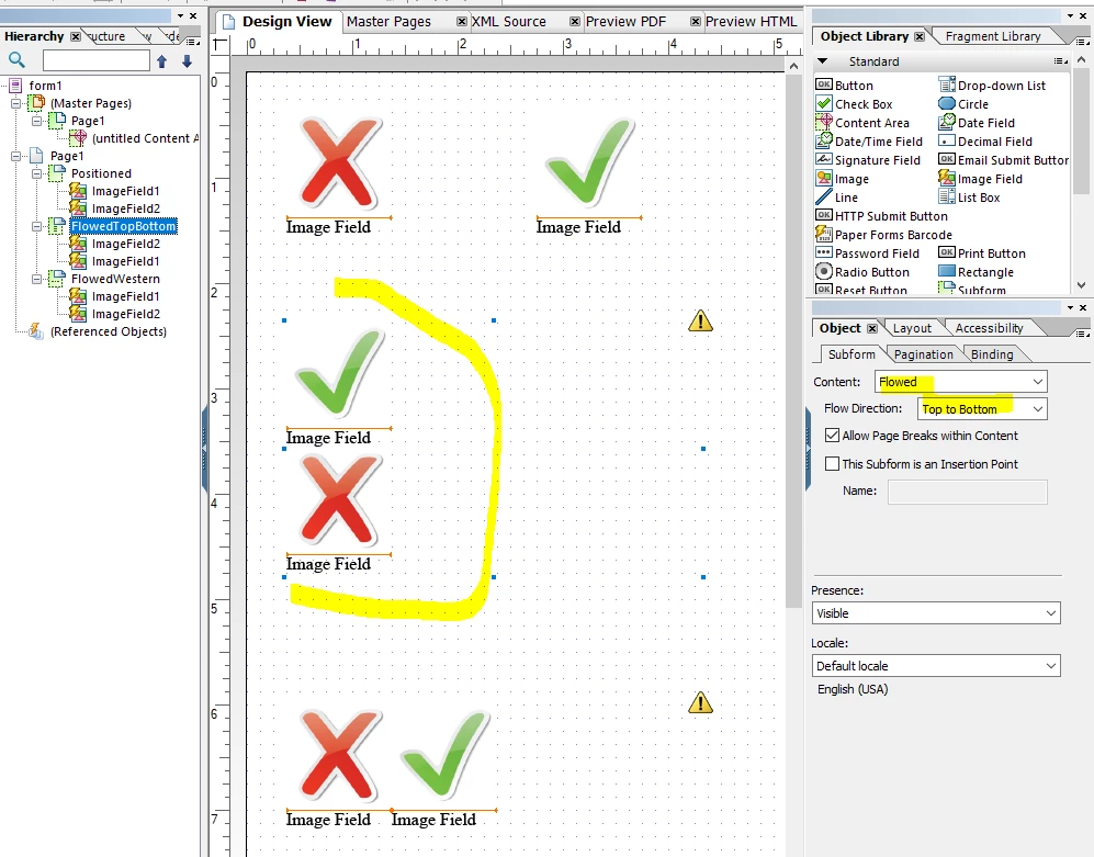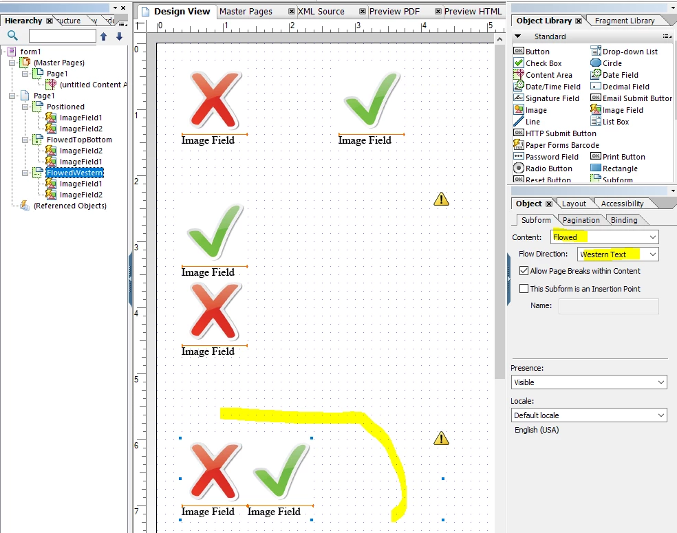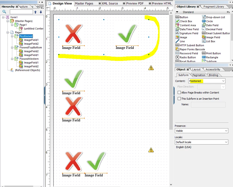 I have two separate images in my form which I want to appear side by side (horizontally) but when I added them to the form, I can only place them vertically. How can I change that? By having them vertically, it pushes one of the images to the second page. I would like the user to see both images on one page and use up the wasted space.