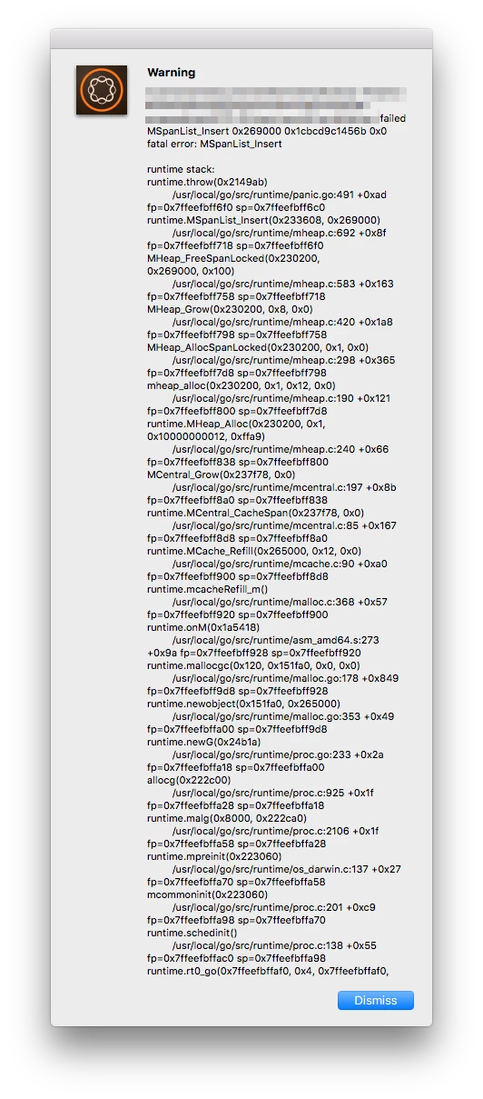 Since upgrading to macOS High Sierra, I have been unable to package articles using the AEM Mobile Packager tool -- on each packaging attempt, it crashes with a Go runtime error, as shown: