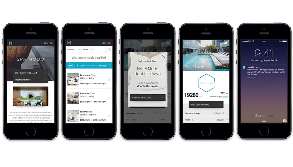 Axis41 has a hotel booking app. What are the article contents of that app? There's no table of contents, or has that been customized as the "M" in the upper-left corner?