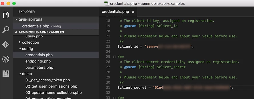 Next, I plug those values combined with the returned AEM Mobile On-Demand services form from Adobe in the configure.php: