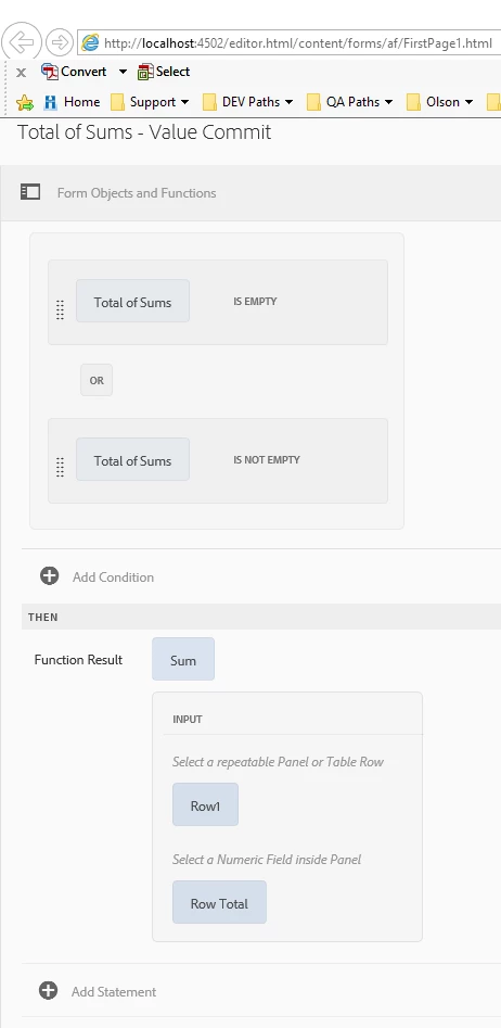 3. Then, I set the function result (sum) to add each of the instances of ‘row total’.