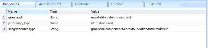 1. Add granite:id property to your multifield node with value "multifield-custom-insert-first". That should look like this:
