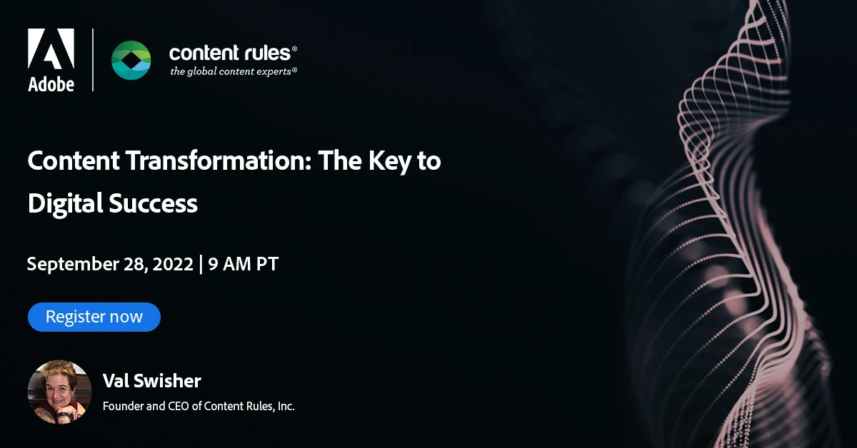 You are invited to Adobe Webinar on Content Transformation with Val Swisher!