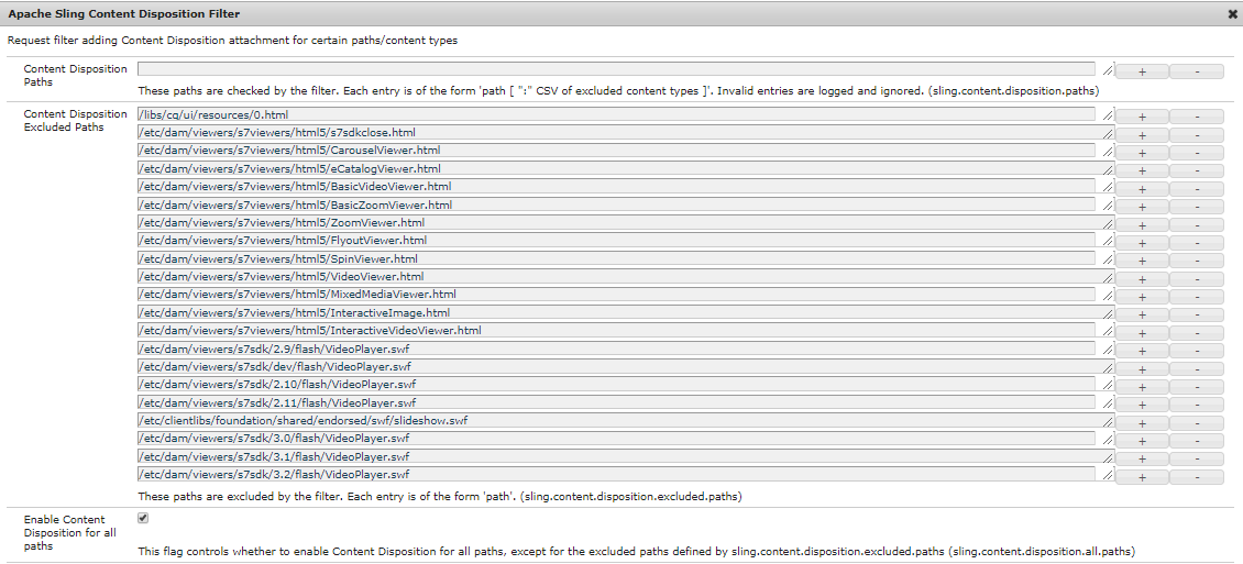 Apache Sling Content Disposition Filter Configuration where static files needs to be added to meet requirements.