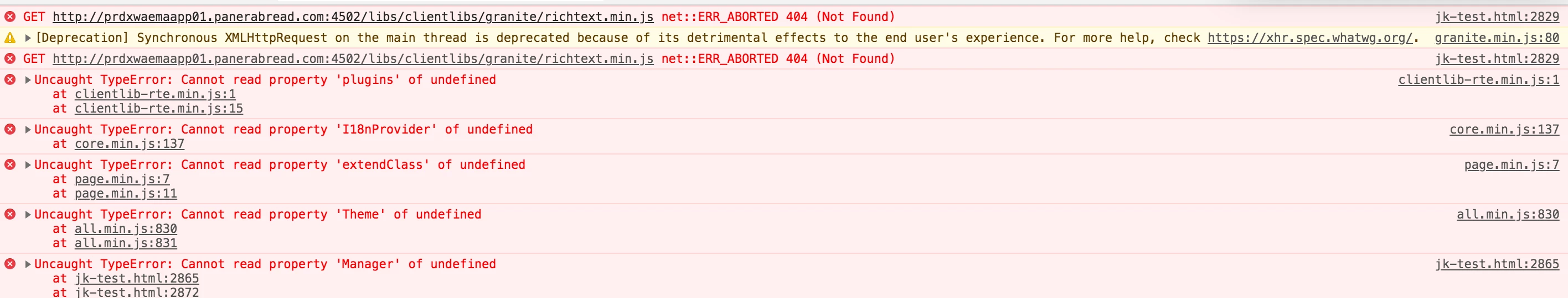 2020-04-22 08:34:09,783 *ERROR* [96.37.61.251 [1587562449589] GET /libs/clientlibs/granite/richtext.min.js HTTP/1.1] com.adobe.granite.ui.clientlibs.impl.HtmlLibraryManagerImpl Error during assembly of library.