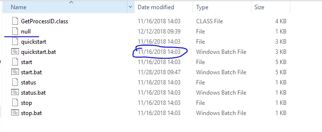 Noticed when starting AEM jar for first time. After I see the quickstart folder, I go to bin and hit the start.bat the instance starts, but at the same time a file named as 'null' is created.