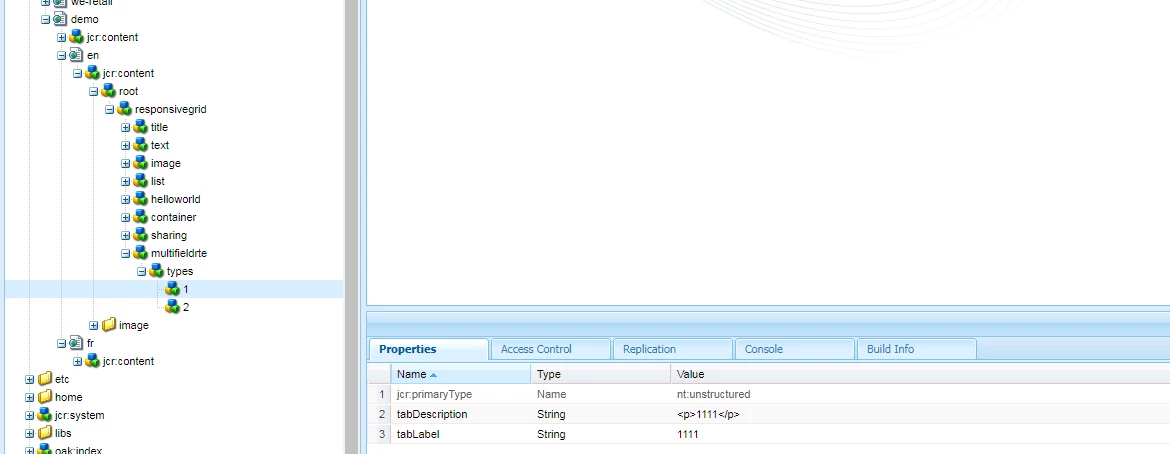 In the crx/de, we can see description accurately is "<p>1111</p>"