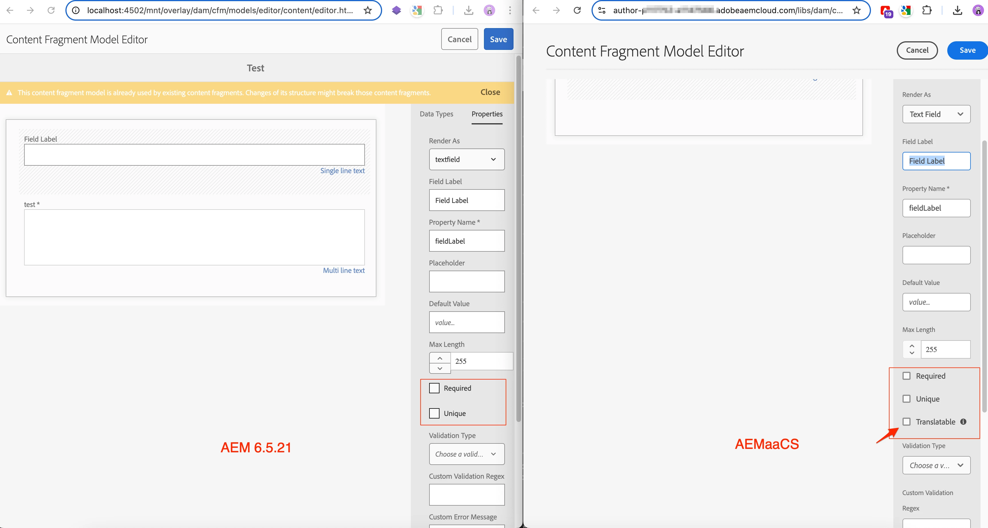 We recently upgraded from AEM 6.5 SP14 to SP21, and since the upgrade, we’ve been facing an issue where content fragment models (CFMs) aren’t retaining field values. After editing and saving the content fragment models, the values don’t seem to stick. This happens with both existing CFMs and newly created CFMs.