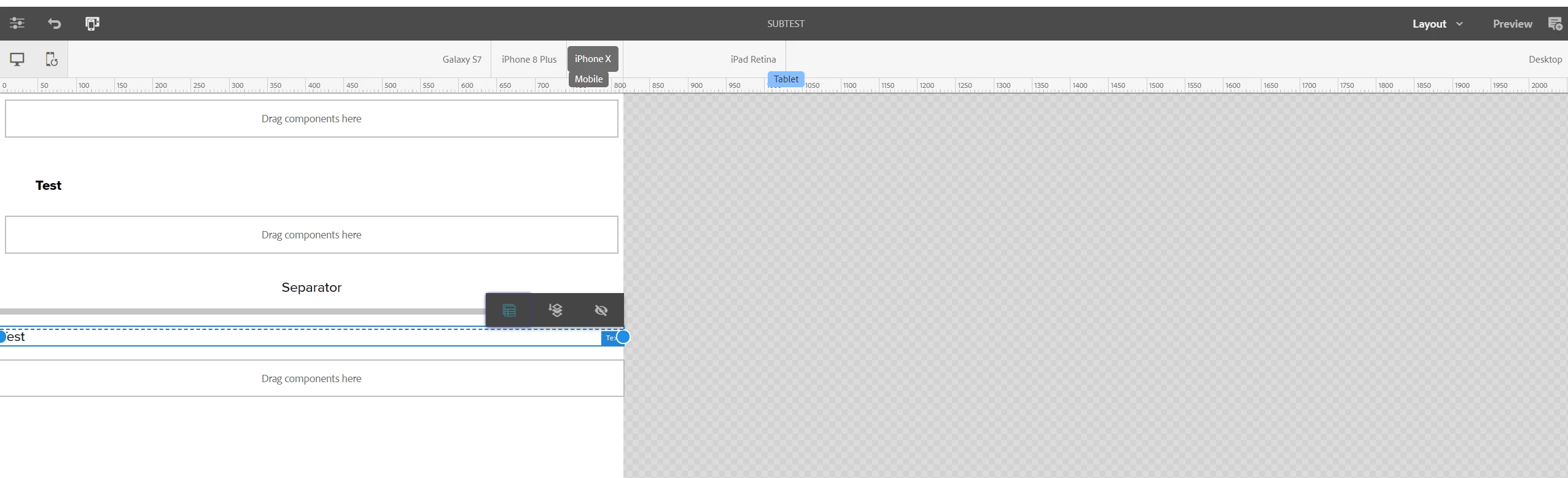 Could not hide or resize the component in responsive grid layout mode for any mobile/tablet. Any idea what's missing?