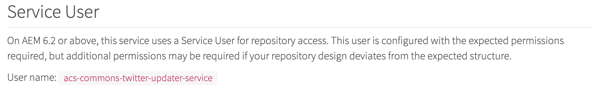 org.apache.sling.api.resource.LoginException: Cannot derive user name for bundle com.adobe.acs.acs-aem-commons-bundle [627] and sub service twitter-updater