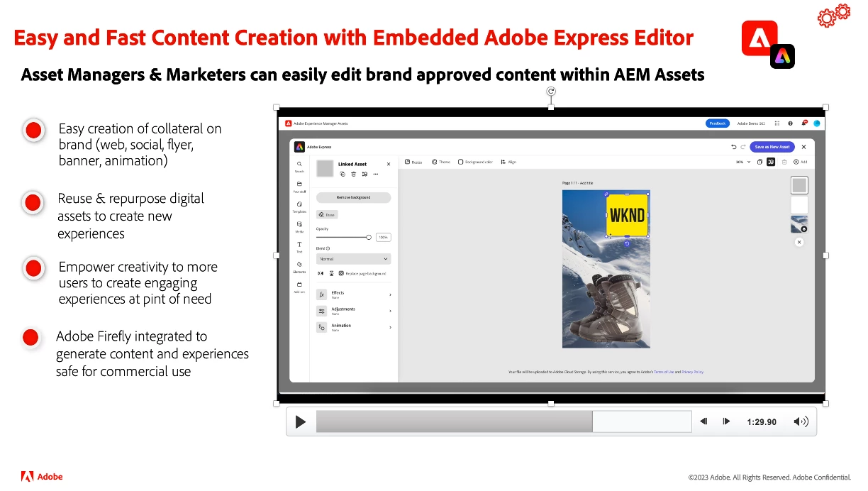 • Adobe Express embedded editor in AEM Assets