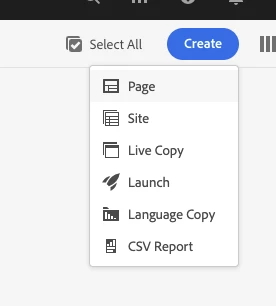 AEM Cloud: Create only shows "CSV Report" for all new users, even with admin permission. Page etc. Missing from Create menu.