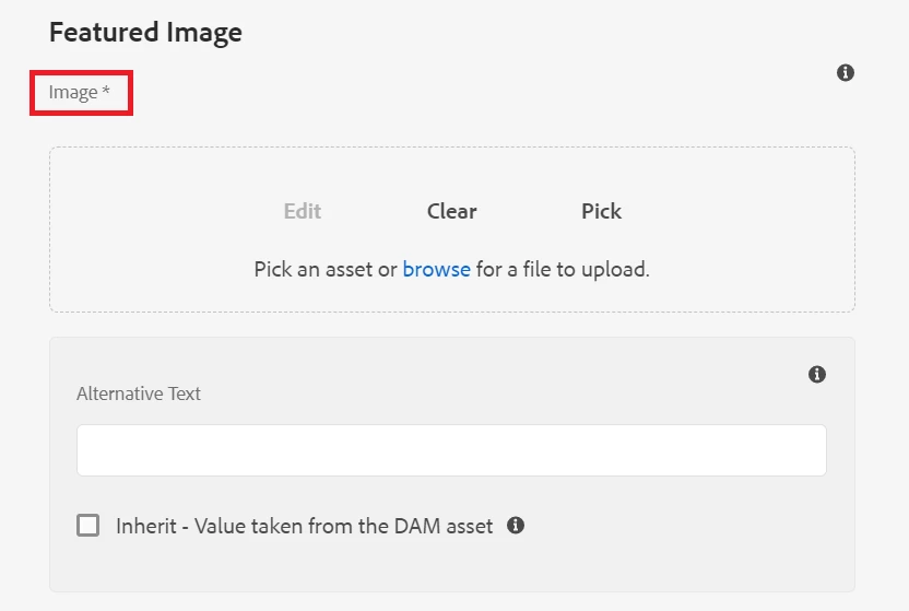 AEM Cloud - Unable to make Featured image field mandatory in page properties