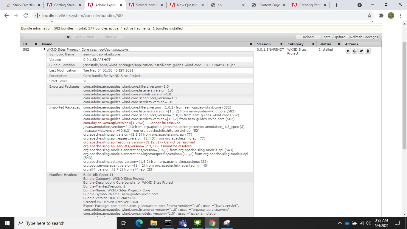 Considering this, bring the AEM instance up with all bundles active in http://localhost:4502/system/console/bundles