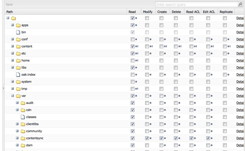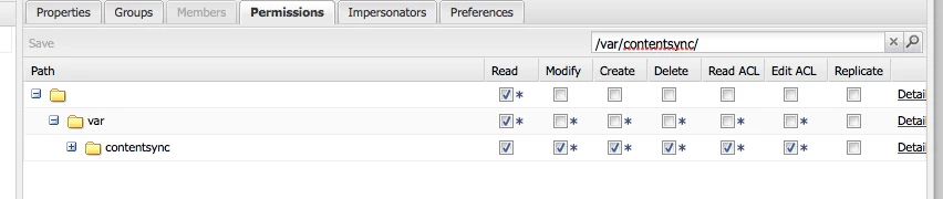 For export action, apart from read permissions of content below permission is required at /var/contentsync.
