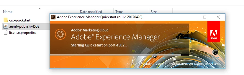 I moved Jar file along with license.properties and crx-quickstart folder into a new folder as “AEM Publish” and renamed the Jar file to “aem6-publish-4503” . I have also deleted the earlier author file