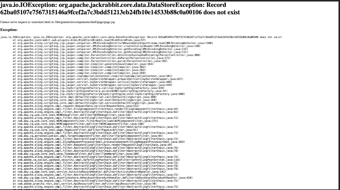 Hi Team while installing AEM 6.5.16.0 in mac system we are facing a different issue where we are able to get the login screen while starting the AEM but after that we are getting below error. Also while directly calling system/console we are able to see the console.