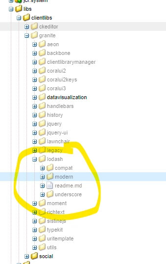 After updating AEM 6.5.10 underscore dependency is not loading.